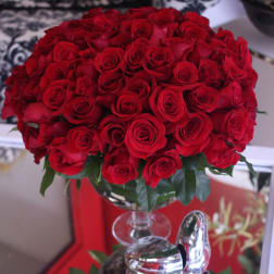 Price: $1,000.00100 red roses in a Large Vine Glass